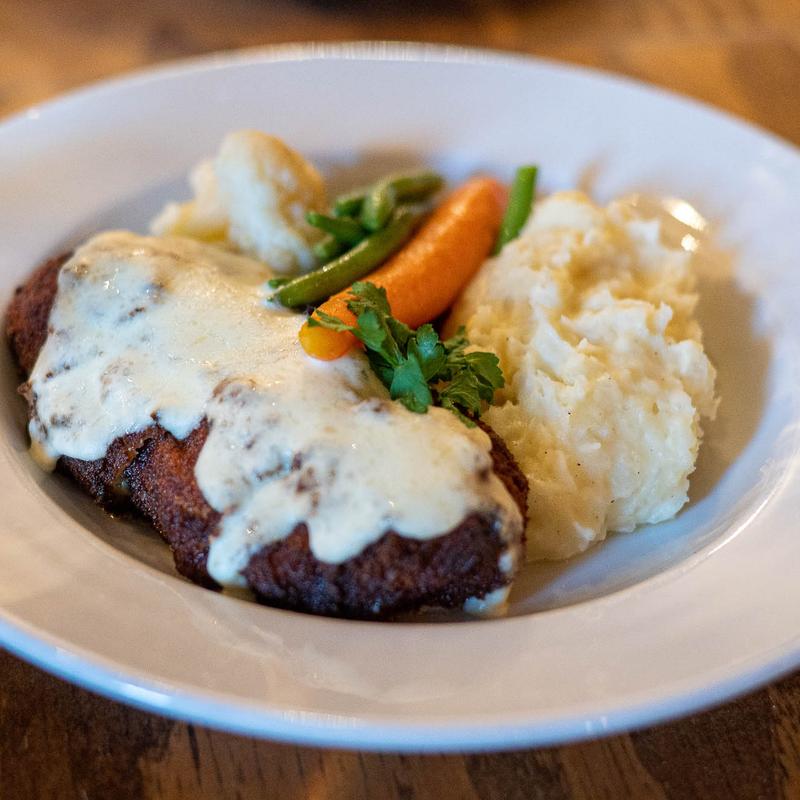 ½ roasted chicken, seasoned with herbs and roasted to perfection. Served with mashed potatoes & vegetables